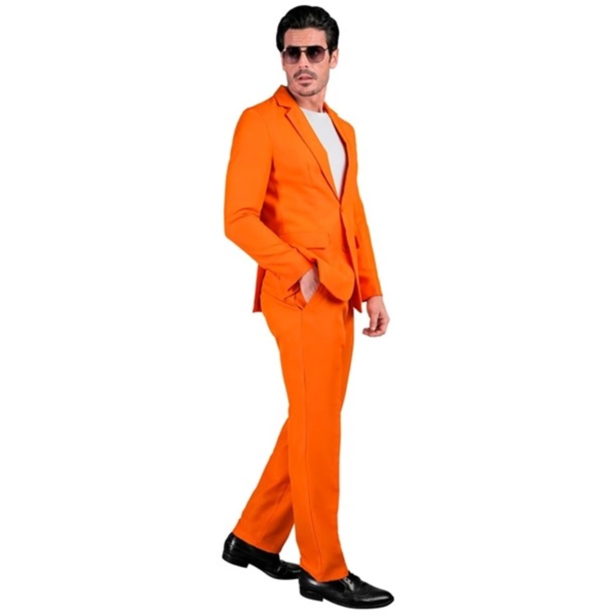 Met dit United for Orange supporterskostuum in feloranje steel je gegarandeerd de show op de tribune, in de fan zone of in de kroeg. Het pak bestaat uit een stijlvolle colbert en een bijpassende pantalon van 100% polyester, met een grote United for Orange-logo-opdruk op de rug van het jasje zodat iedereen direct ziet voor welk team jij juicht. De moderne snit geeft een nette, feestelijke look die perfect past bij interlands, kampioenschappen en speciale oranje-acties. Combineer het kostuum met een overhemd of T-shirt in jouw eigen stijl en creëer de ultieme supportersoutfit voor het Nederlands herenteam handbal. Let op: de bedrukking mag niet worden gestreken – strijk altijd om de print heen of gebruik een persdoek om beschadiging te voorkomen.